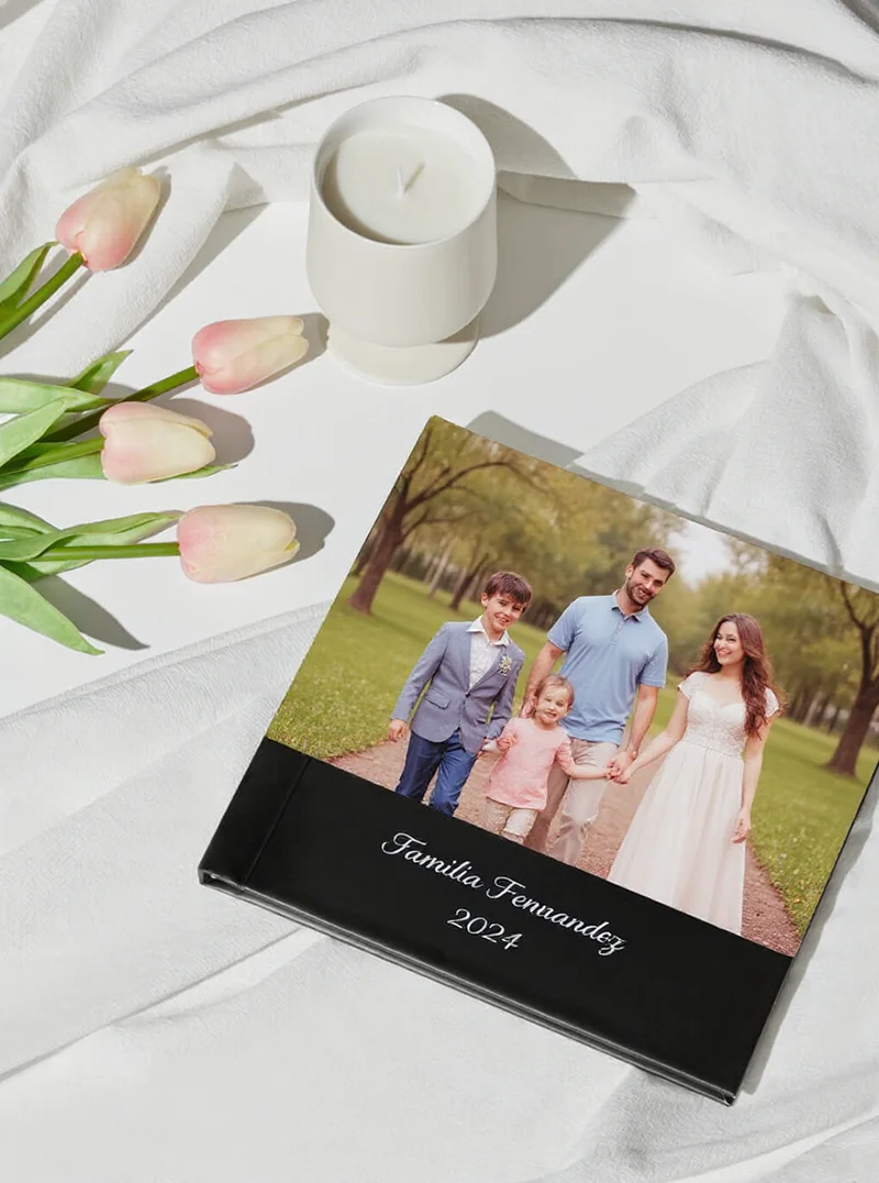 Nuestro álbum familiar con la mejor relación calidad-precio, con tapa dura sin costuras de 25 x 25 cm y 100 páginas ligeras, muestra con belleza tu días en familia. Captura cada recuerdo con elegancia y a un precio accesible.